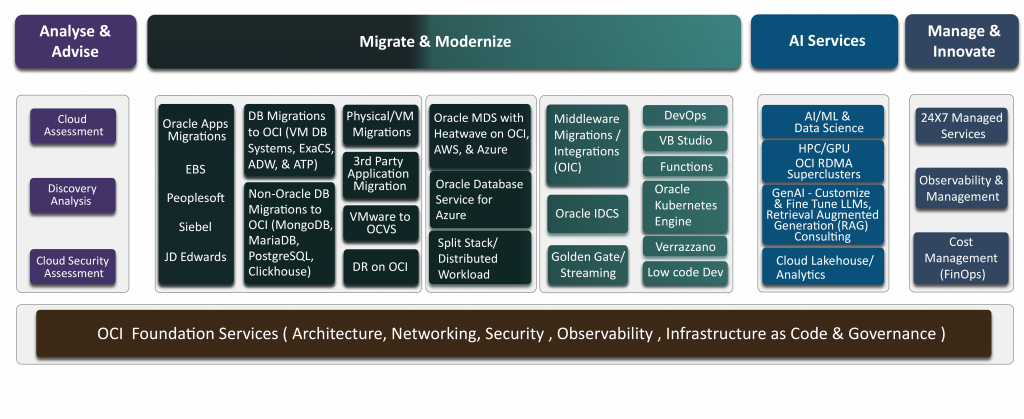 As multi-cloud enablement experts — INFOLOB helps its clients cloudify their IT with the choices of Oracle Cloud Infrastructure and Microsoft Azure, and their integrations. We deliver value with our own set of best practices and migration frameworks mentioned below. Here are a few key reasons to choose Oracle Cloud; and the recent announcement of Oracle Database@Azure. Following summarizes our cloud migration process that involves industry proven best practices to achieve all predefined digital transformation KPIs.